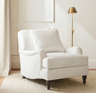 This chair is nice and wide to accommodate many different sitting positions or maybe even share. It is a traditional chair with rolled arms but still has clean lines to give it some transitional flare. The price point of this seat is going to be hard to beat!