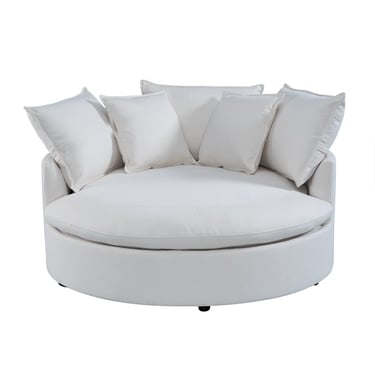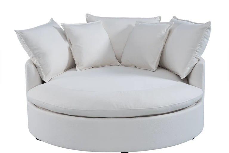Add some extra fun dimension with this round swivel chair. Extra cushions means extra cozy and this comes with five! This is a bit more of a modern option but still scores a 10 for coziness factor!